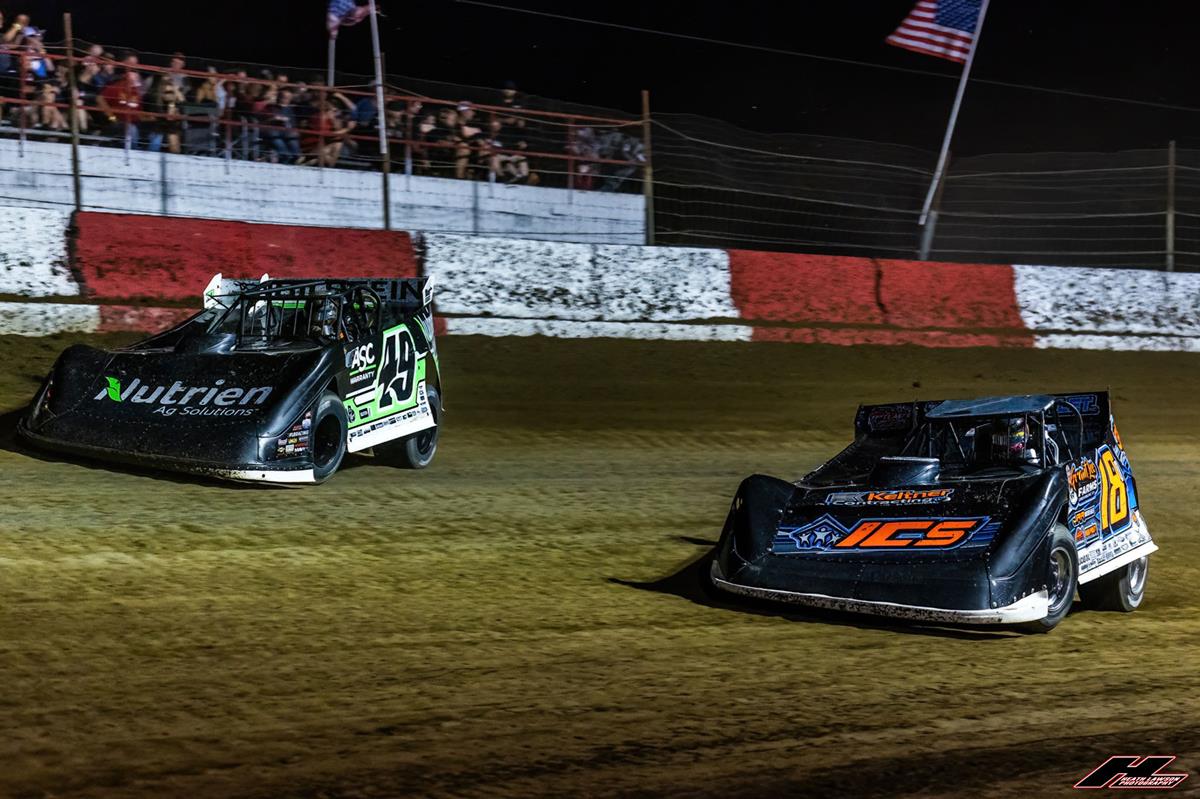 Justin Rattliff joined Jameson on Saturday afternoon for the $12,059-to-win Butterball Memorial at Richmond (Ky.) Raceway. Starting on the outside pole, Jason led the first 39 circuits before a tire issue pulled him pitside. Jameson was credited with a 19th-place finish while Rattliff kept his nose clean and finished just off the podium in fourth.