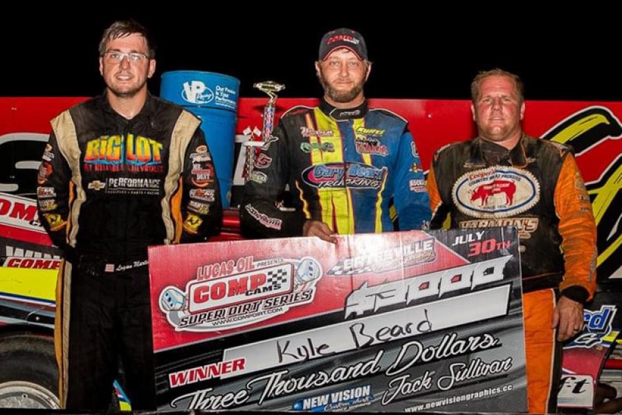 For the second stop of the weekend on Friday at Batesville Motor Speedway (Batesville, Ark.), Beard's runner-up finish in his heat positioned him fifth on the starting grid for the main event. Closing in on race-long leader Logan Martin in the waning laps, Kyle snuck ahead of Martin on the final circuit to secure his third win of the season and 19th-career CCSDS triumph. He finished ahead of Martin, B.J. Robinson, Morgan Bagley, and Hunter Rasdon to claim $3,000.