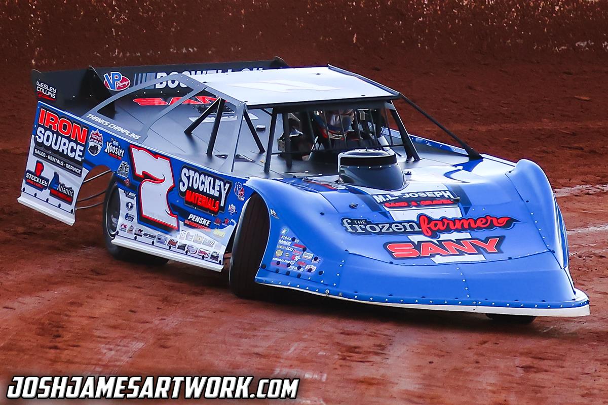 With 31 Late Models entered for the recently announced event paying $4,000 to the winner, Ross and Amanda raced their way into the main event with a pair of third-place finishes in their heat races. Amanda hung onto a sixth-place finish in the 25-lapper while Ross chased race-long pacesetter Dillan Stake to the checkers in the feature. Rick Eckert, Hayes Mattern, and Jeff Rine completed the top-five finishers.