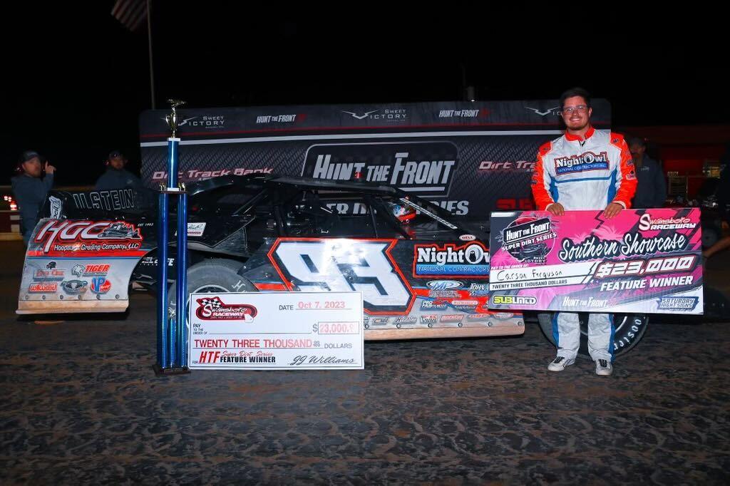 Trading sliders on the first lap, Ferguson ran second in the first 45 laps of the A-Main before powering around Cody Overton on the outside during a late restart. Leading the final 15 circuits, Carson secured a career-best $23,000 payday at Swainsboro Raceway. In his second triumph with the Hunt the Front Super Dirt Series, Carson outran Ashton Winger, Cody Overton, Pearson Williams, and Josh Putnam who completed the Top-5 finishers.
