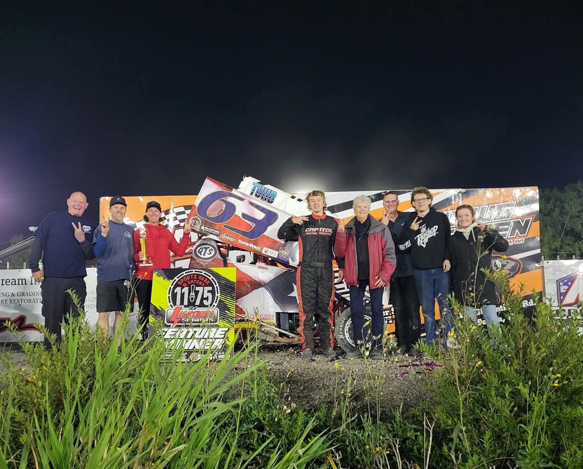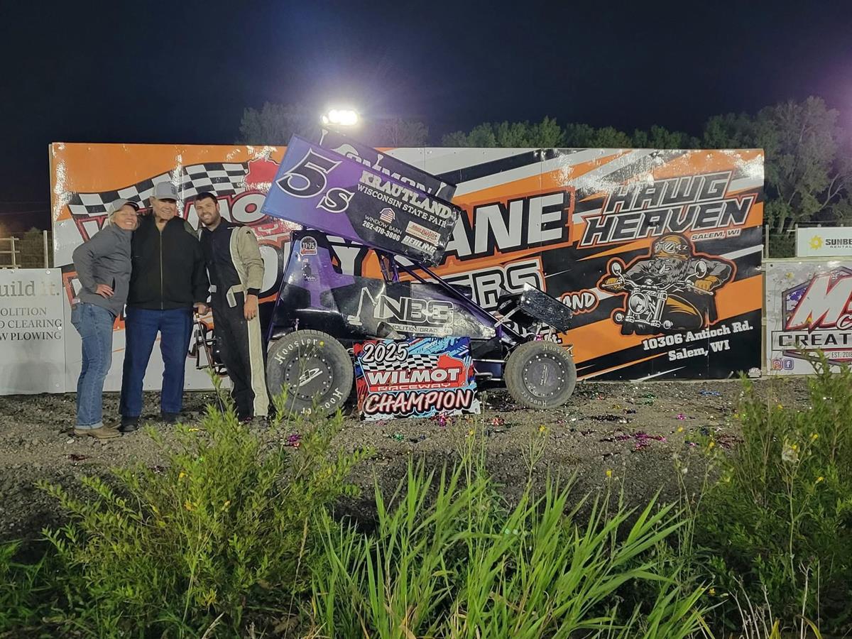 (Wilmot, Wis., Saturday, September 6, 2025)--Big Bend's Chad Stouthamer used a lot of knowledge learned from Waukesha's Mark Heinert to pick up the 11-75 Sports Complex & Eatery IRA Lightning Sprints Wilmot Raceway 75th Season Championship Saturday, September 6, 2025.