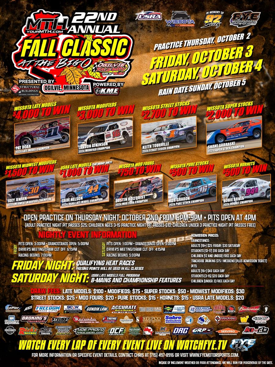 Event details on the photo or visit FYEMotorsports.com for more details on the 22nd Annual MTH Fall Classic at The Big O!